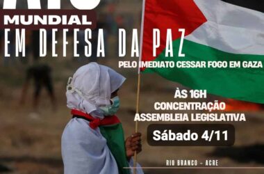 Na tarde deste sábado, 4, Rio Branco será uma das cidades do mundo a ter um ato em defesa da paz, pedindo cessar-fogo em Gaza.