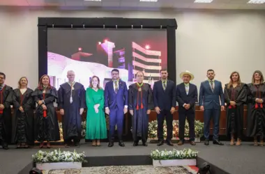 O governador do Acre, Gladson Cameli, e o empresário Ricardo Leite, mantenedor do Centro Universitário Uninorte, foram homenageados durante a sessão solene realizada pelo Tribunal