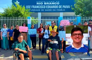 Servidores da Unidade de Saúde da Família Francisco Eduardo de Paiva, localizada no bairro Rui Lino 3, em Rio Branco, fecharam as portas na manhã