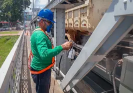 Após o registro de pichações, a Ponte Metálica Juscelino Kubitschek, no Centro de Rio Branco, recebeu serviços de limpeza e pintura para recuperação da estrutura