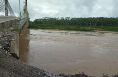 Fortes chuvas na região central do Acre provocaram elevação súbita e assustadora do Rio Tarauacá, que se aproximou muito da cota de transbordamento na tarde