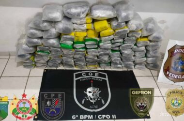 Neste sábado, 15, as forças de segurança apreenderam 118,5 quilos de entorpecentes e prenderam um homem no Rio Juruá, no município de Rodrigues Alves. As