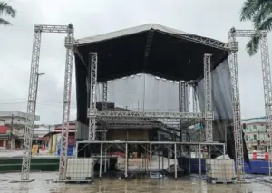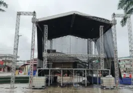 Já estão prontos o palco e os presentes para a Festa das Crianças que a Prefeitura de Cruzeiro do Sul,com apoio do Governo do Estado,