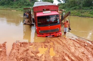 Vídeo mostra passageiros e veículos precisando concluir a travessia por dentro da água
