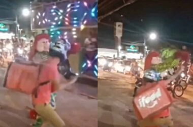 Um vídeo que está circulando na internet durante este domingo, 18, mostra o momento em que um entregador do Ifood se junta ao personagem Fofão,