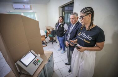 O presidente do Tribunal Regional Eleitoral (TRE-AC), desembargador Francisco Djalma, acompanhou a testagem e montagem de uma das urnas eletrônicas referentes a sessão 280 da