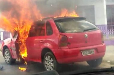 No final da manhã desta terça-feira, 27, um carro pegou fogo na Avenida Copacabana, em Cruzeiro do Sul. A condutora, identificada como Clodomira, não ficou