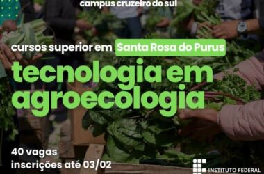 Inscrições para Agroecologia do IFAC em Santa Rosa do Purus terminam nesta sexta-feira
