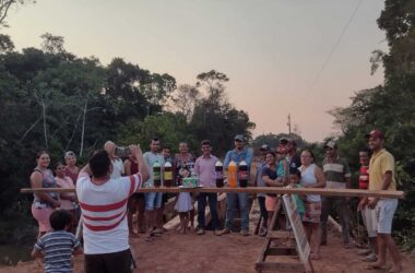 Moradores do Ramal da Limeira, no município de Senador Guiomard, fizeram uma festa para “comemorar” a falta de uma ponte que prejudica o escoamento da