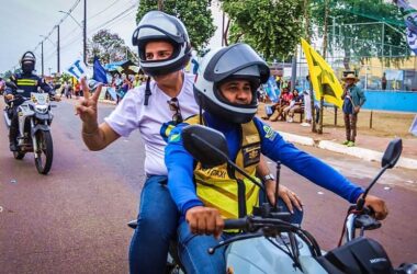O governador Gladson Cameli (Progressistas) resolveu, como de costume, quebrar o protocolo e chegou para a carreata nesta sexta-feira, 9, em uma motocicleta – mototáxi,