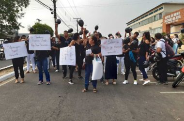 Protestando contra a decisão do STF, de suspensão do pagamento do piso salarial da categoria os enfermeiros que atuam no Hospital da Mulher e da