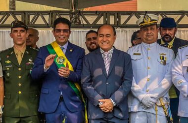 O governador Gladson Cameli e o prefeito de Rio Branco, Tião Bocalom, ambos do Progressistas, estiveram no mesmo dispositivo de honra durante o desfile cívico