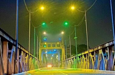 A ponte metálica Juscelino Kubitschek localizada no centro de Rio Branco, recebeu iluminação com as cores da bandeira do Brasil para celebração do Bicentenário da