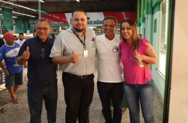Os candidatos a governador, Jorge Viana, vice-governador Marcus Alexandre e senadora Nazaré Araujo pela Federação Brasil da Esperança Acre, estiveram na manhã desta quinta-feira, 25,
