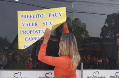 A primeira-dama do município de Epitaciolândia, Aline Saldanha, reagiu de maneira inusitada, na manhã desta segunda-feira (22), quando ocorria um protesto de professores da rede