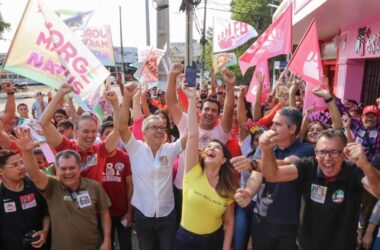Os candidatos ao governo da Federação Brasil pela Esperança no Acre Jorge Viana (PT), Marcus Alexandre (PT) e a candidata ao Senado, Nazaré Araújo (PT)