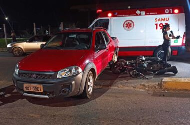 Uma colisão entre um carro modelo Fiat Strada, de cor vermelha, placa NXT-0807 e uma motocicleta Yamaha Fazer, de cor preta, placa NAB-2H07, deixou Zedequias