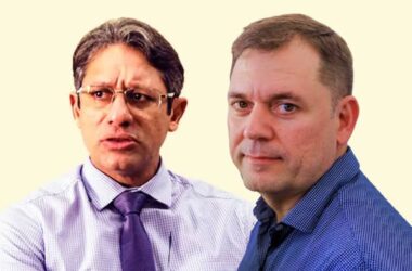 Candidato ao governo do Acre pelo AGIR, o professor David Hall levou seu coordenador de campanha, Kleber Miranda, à entrevista na TV Gazeta na tarde