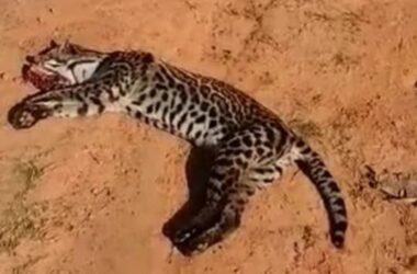 Em publicação feita nas redes sociais, um homem registrou uma onça pintada morta às margens de uma rodovia da BR-364, no Bujari, após ser atropelada