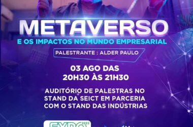 A palestra “Metaverso e os impactos no mundo Empresarial “, será apresentada nesta quarta-feira, 3, no auditório da Secretaria de Estado de Indústria, Ciência e