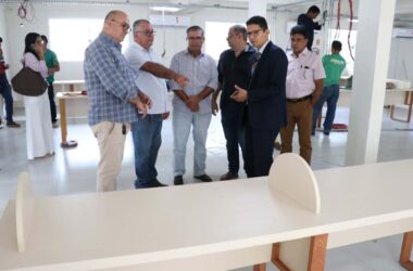 O presidente da FIEAC, João Paulo de Assis, e o presidente do Sindmóveis, Augusto Nepomucena, realizaram um encontro com empresários do setor moveleiro e autoridades