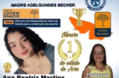 A estudante Ana Beatriz Martins, 16, da Escola Cívico Militar Madre Adelgundes Becker, em Cruzeiro do Sul, foi escolhida para representar o Estado do Acre