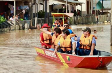 O governador Gladson Cameli interrompeu sua agenda nesta quarta-feira, 23, para ir até o município de Tarauacá levar assistência aos mais de 12 mil atingidos