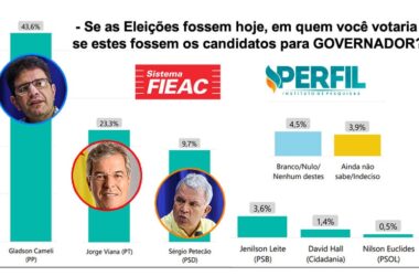 O Instituto Perfil, que realizou pesquisa de intenção de votos para o governo do Acre encomendada pela Federação das Indústrias do Acre (Fieac) para o