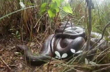 Um fotógrafo da vida selvagem registrou o momento no qual uma sucuri adulta acasala com vários machos às margens do rio Formoso, em Bonito, em