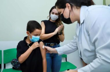 O governador Gladson Cameli e a primeira-dama, Ana Paula, levaram o seu filho Guilherme, de apenas 8 anos, para se vacinar em uma unidade de