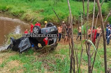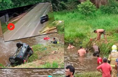 Vídeo mostra momento em que motorista perde o controle de carro e cai em igarapé