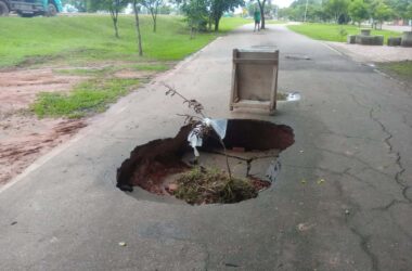Em menos de 24 horas, uma enorme cratera se abriu e nada foi feito para conter a erosão causada pelas águas da chuva que estão