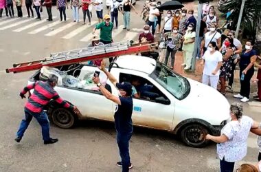 Motorista fura bloqueio e quase atropela servidores da saúde