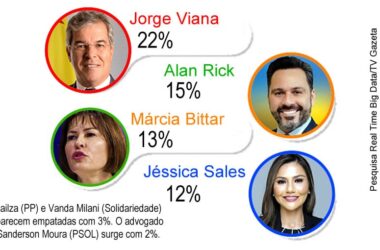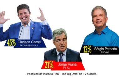 A TV Gazeta divulgou na tarde desta quinta-feira, 2, uma pesquisa do Instituto Real Time Big Data que aferiu a preferência do eleitor acreano para