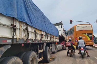 A quebra de uma carreta em uma das cabeceiras da ponte José Augusto, que liga as cidades de Brasiléia e Epitaciolândia, provocou transtornos aos motoristas