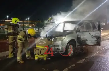 Uma caminhonete modelo Chevrolet S10 de cor prata e placas OBQ-9A18, foi completamente consumida pelas chamas na noite desta segunda-feira (7), enquanto trafegava pela Via