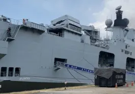 O navio-aeródromo multipropósito Atlântico, a maior embarcação de guerra da América Latina, retornou ao porto de Belém (PA) trazendo mais de 400 toneladas de equipamentos