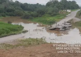 O Rio Caeté subiu na noite desta quarta-feira, 12, cobrindo a ponte provisória instalada no local pelo Departamento Nacional de Infraestrutura de Transportes (Dnit) e