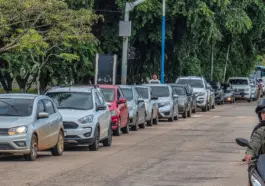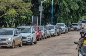 Uma fila de veículos se formou na manhã deste domingo (18) na BR-364, no acesso à Universidade Federal do Acre (Ufac), em Rio Branco, em
