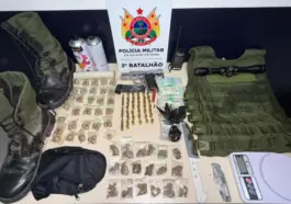Uma ação dos Policiais Militares da Força Tática do 2º Batalhão resultou na apreensão de uma arma de fogo furtada e de diversos materiais relacionados