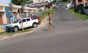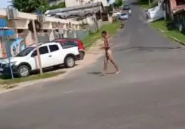 Um homem que aparenta ter problemas mentais foi filmado enquanto andava pela região central de Cruzeiro do Sul (AC), nesta terça-feira, 23, completamente despido e