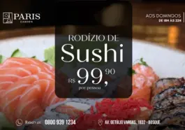 O restaurante Paris Garden, localizado na Avenida Getúlio Vargas, nº 1832, no bairro Bosque, em Rio Branco, disponibiliza aos apreciadores da culinária japonesa um rodízio
