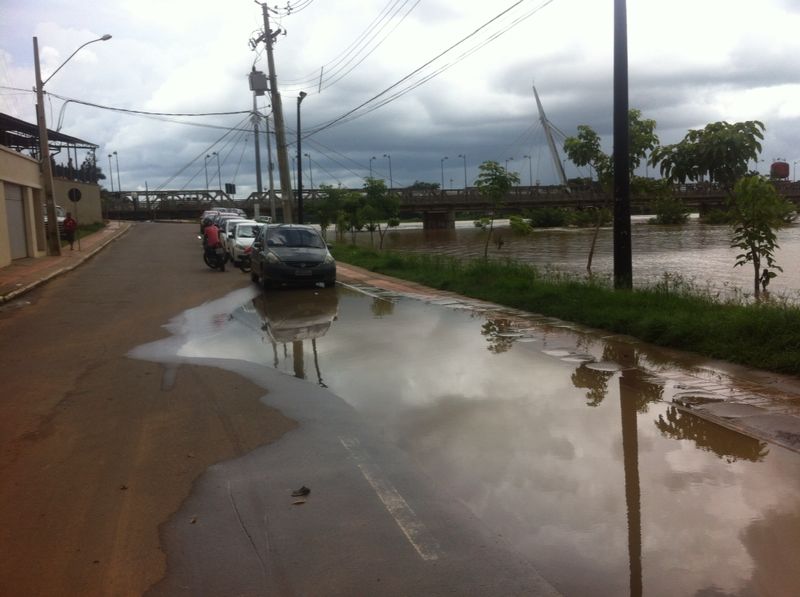 A rua Acre, no Bairro da Base, um dos acessos ao Mercado dos Colonos, começou a ser invadida pelas águas do rio Acre, nesta sexta-feira,