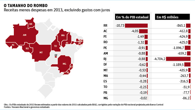 As receitas de 2013 foram insuficientes para cobrir os gastos com pessoal, custeio administrativo e investimentos no Acre e em mais 13 Estados. É o
