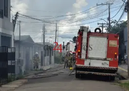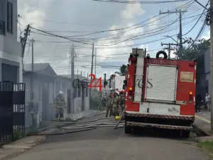 Um incêndio de grandes proporções atingiu uma residência localizada na rua Atlético Grêmio Sampaio, no bairro José Augusto, em Rio Branco, na tarde desta terça-feira