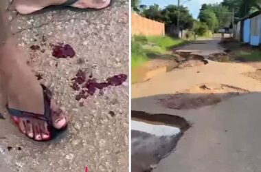 Um vídeo que circula nas redes sociais nesta sexta-feira, 24, mostra um homem identificado por Leudo, cortando um dos pés, após cair em um dos