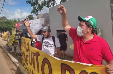 Centenas de servidores da educação voltaram a protestar nesta segunda-feira, 21, na Praça da Revolução em frente a sede da prefeitura de Rio Branco Os