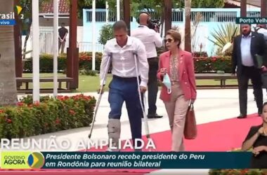 Durante a agenda do presidente Jair Bolsonaro com o presidente do Peru, Pedro Castillo, no Palácio Rio Madeira, em Rondônia, uma repórter da TV Brasil