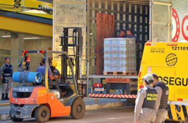 Um forte esquema de segurança foi armado para escolta de um valor não revelado até uma agência bancária na rua Arlíndio Leal, no centro de
